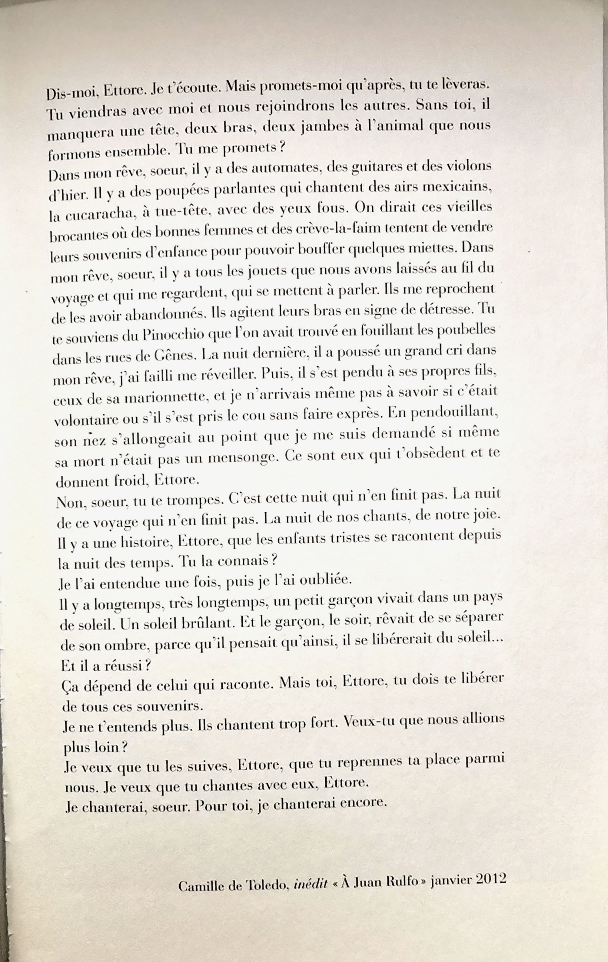 "A' Juan Rulfo"Camille de Toledo