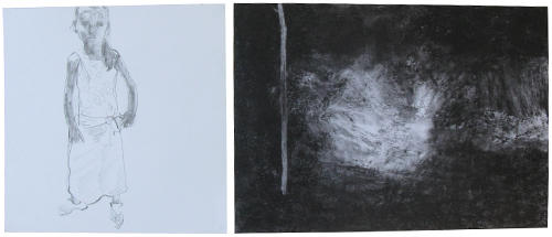 The drawings in the ‘Inner’ series convey sequences of moments that mark the intimacy of characters