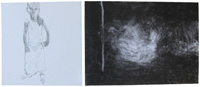 The traces and imprints in the Drawings series reflect an intimate approach that can be observed in the open air, in outdoor spaces, seeking shelter in the light, often nocturnal or nocturnal.