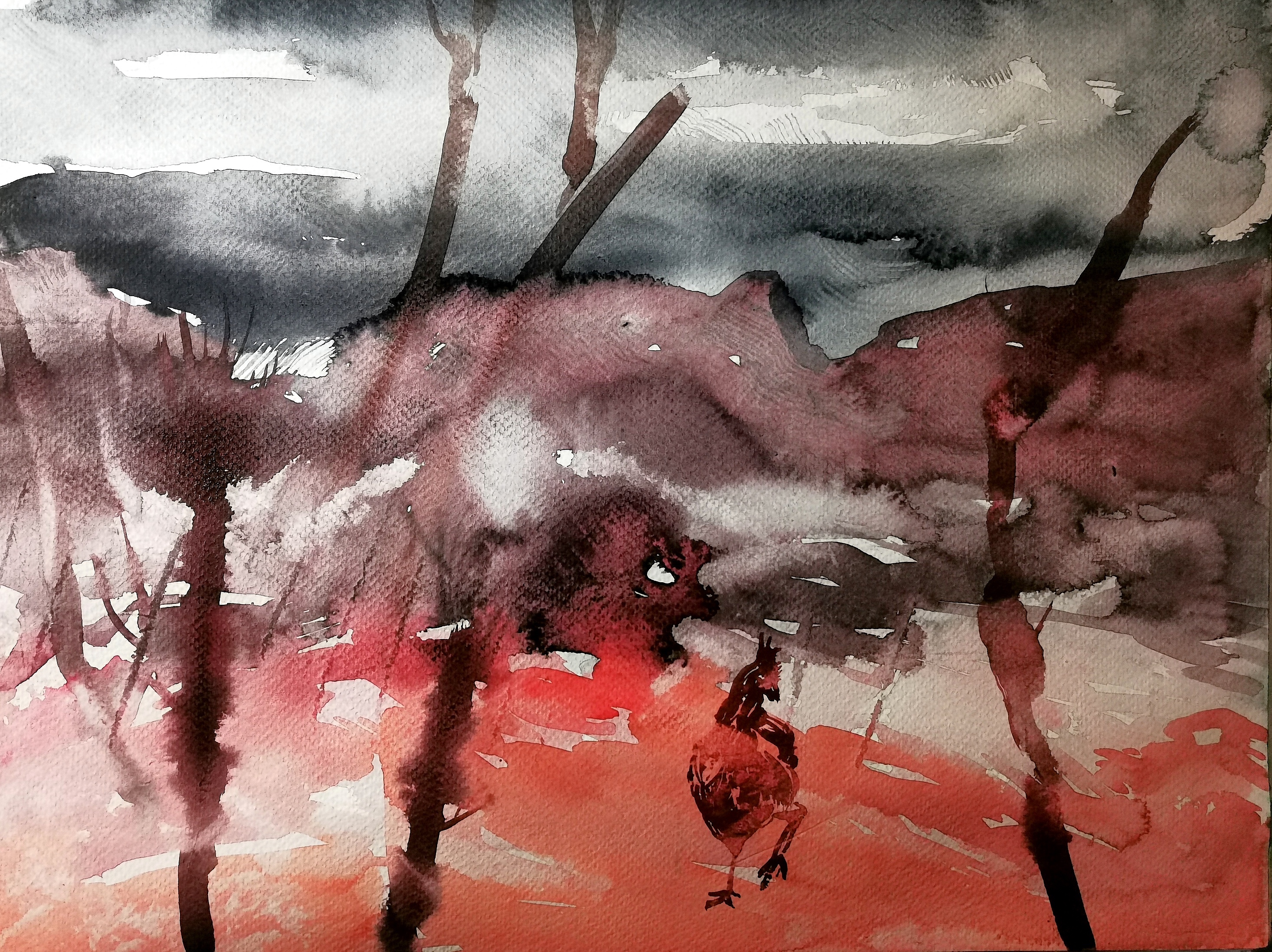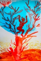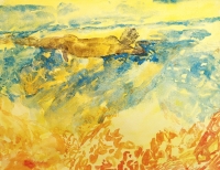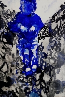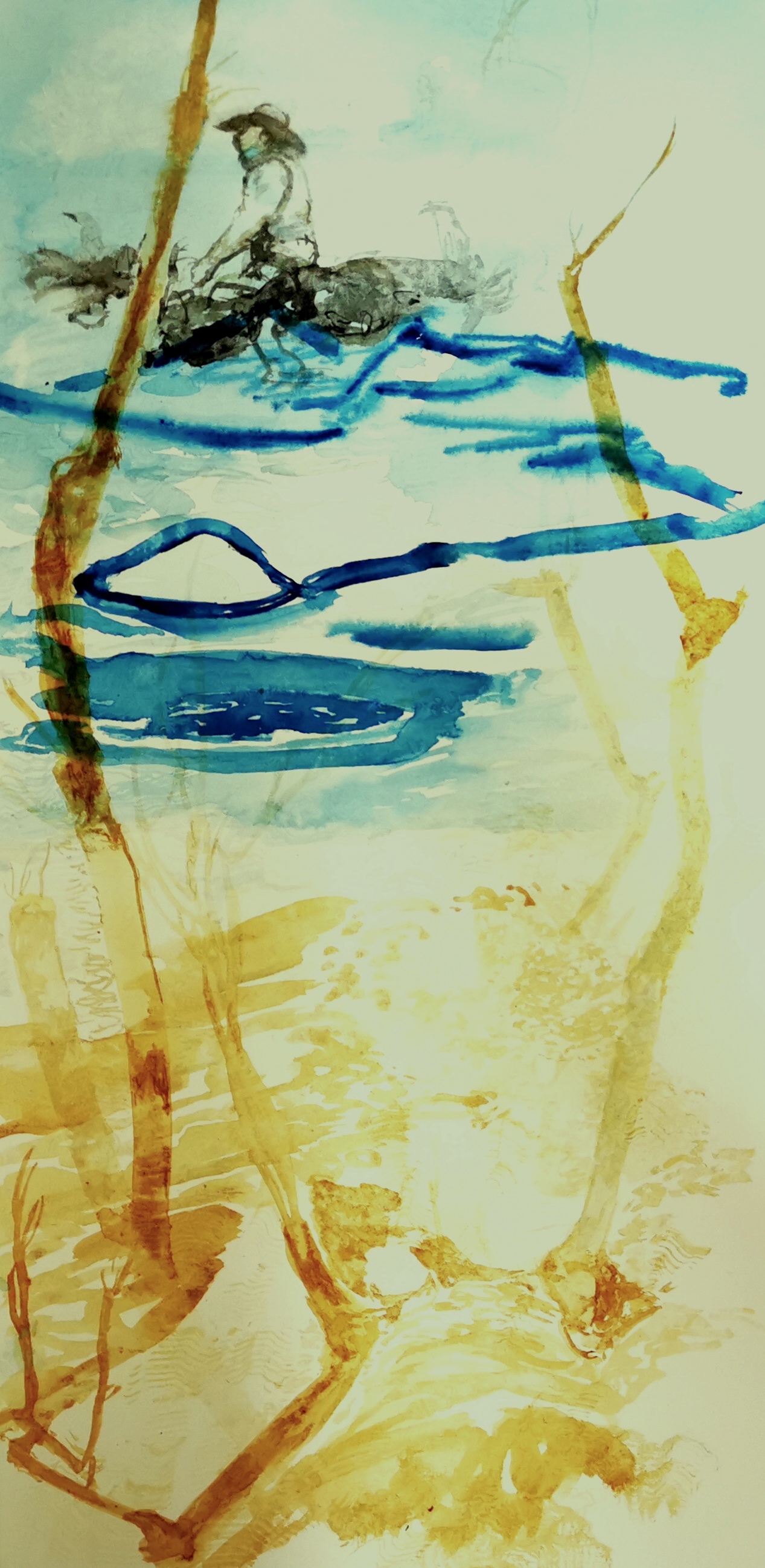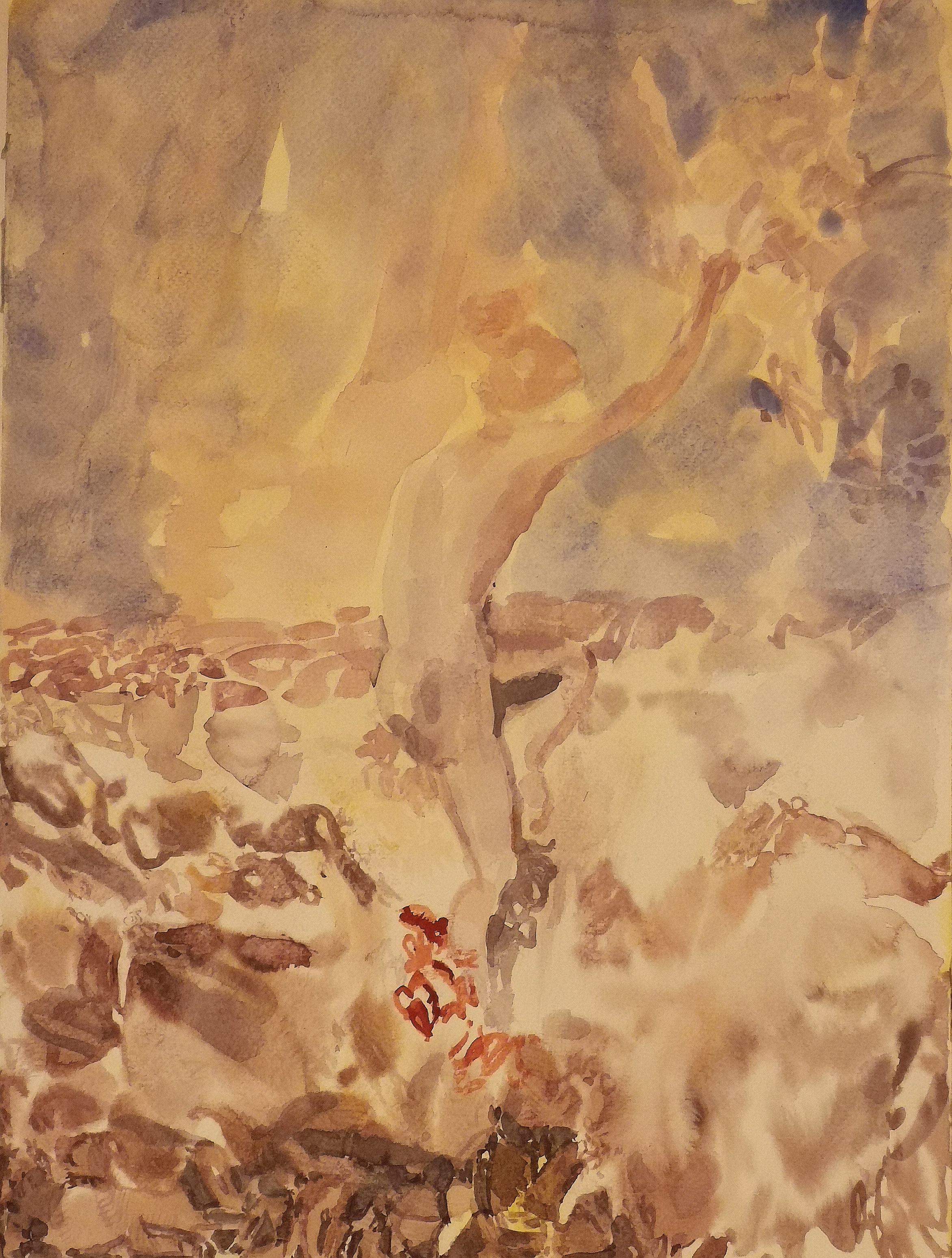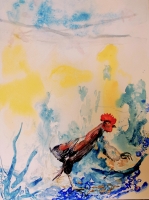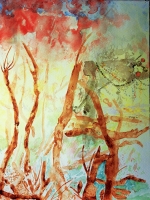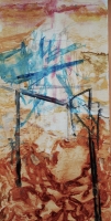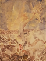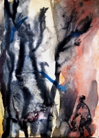 The colours of this work on paper offer the strength of a luminosity that builds a melancholy scene