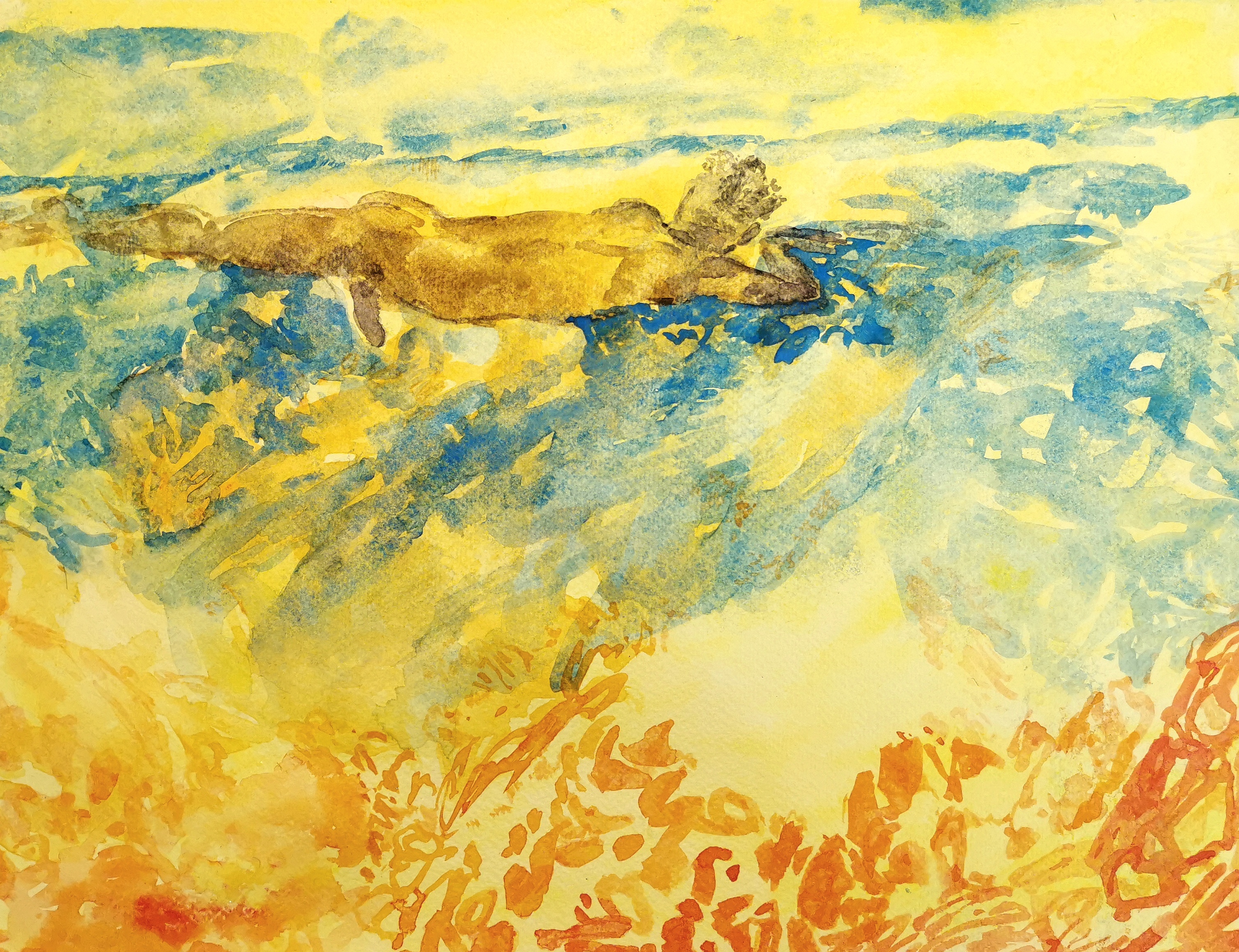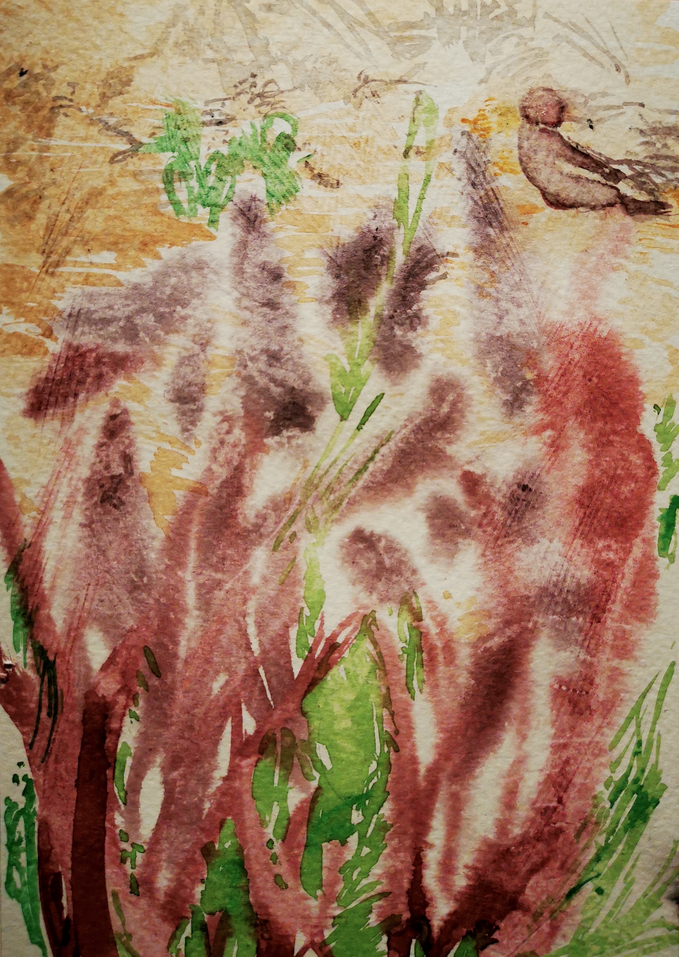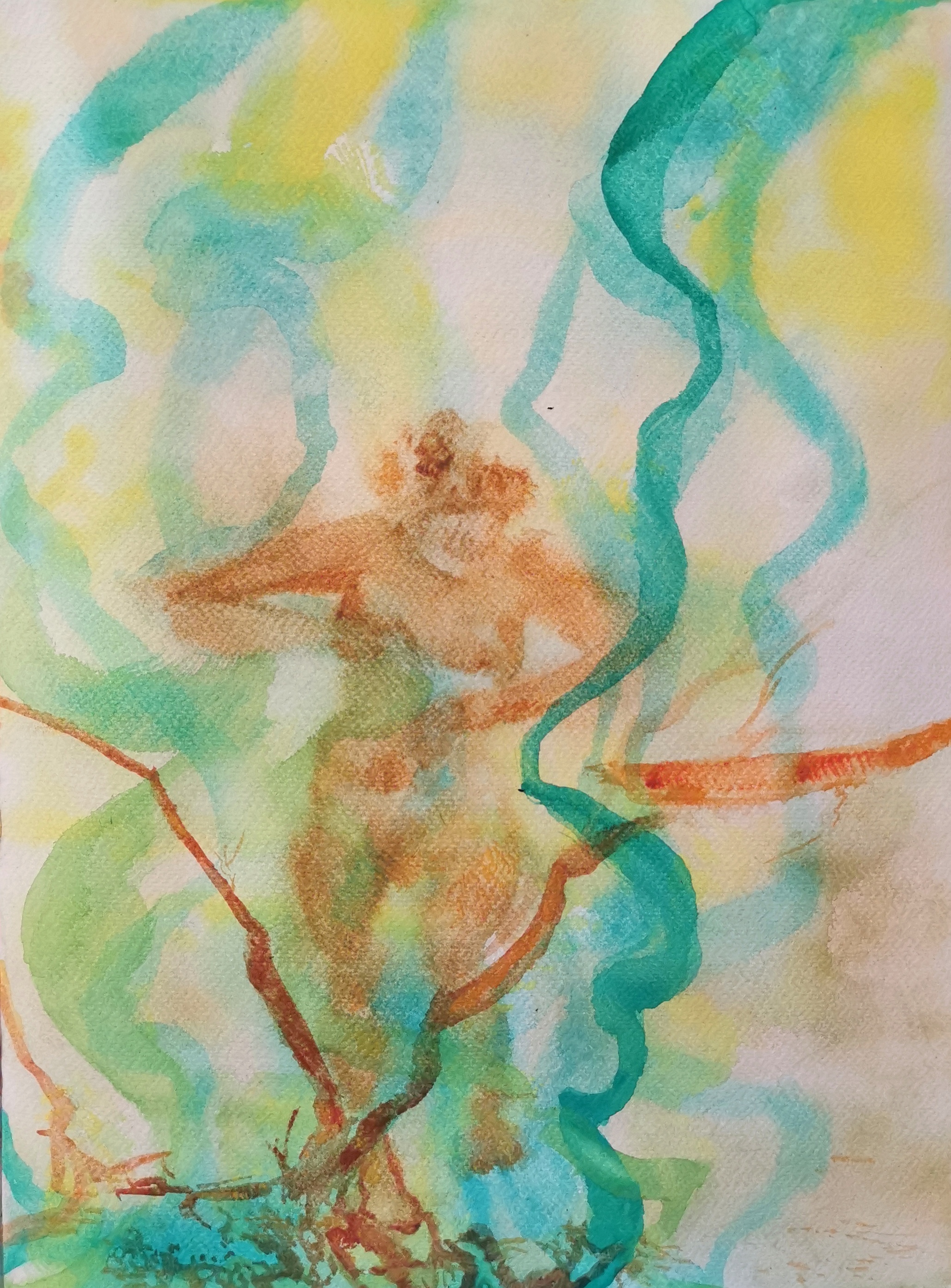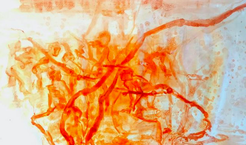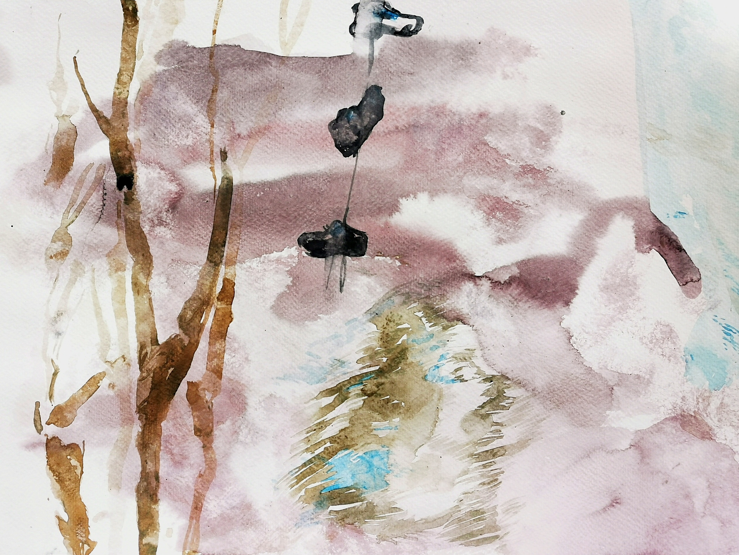 The colours of this work on paper offer the strength of a luminosity that builds a melancholy scene